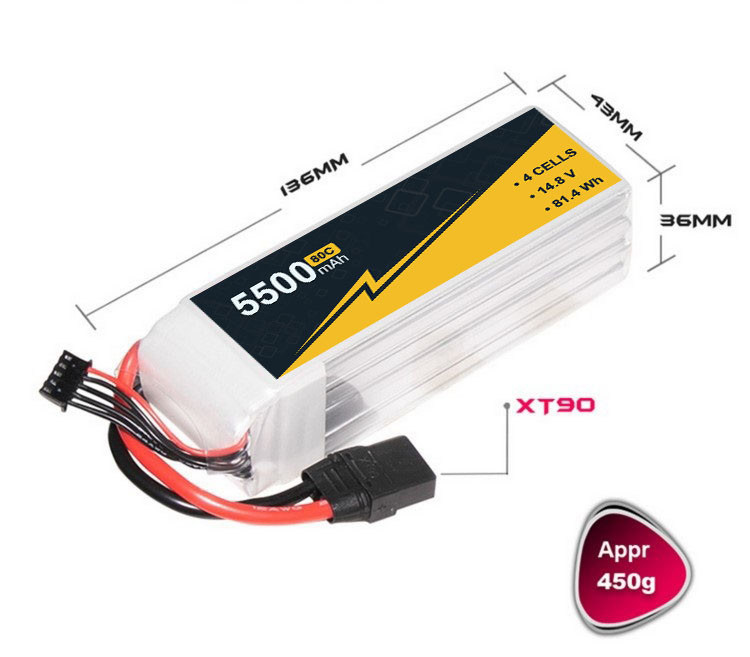 5500mAh 14,8V 4s1P Lipo-Batterien 80C für FPV Lipo-Batterie